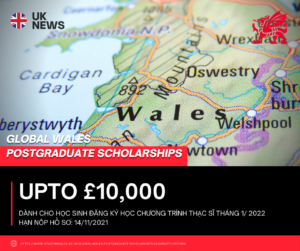 Học bổng thạc sĩ toàn cầu Wales (GLOBAL WALES POSTGRADUATE SCHOLARSHIP) được tài trợ bởi...